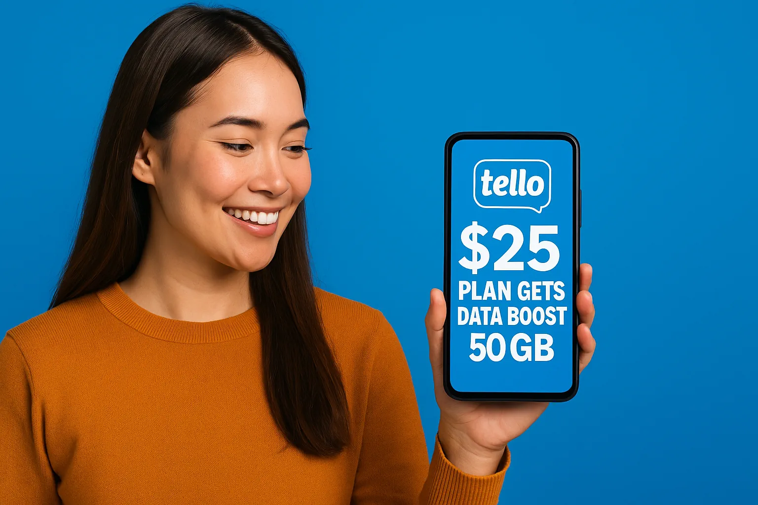 Tello Mobile has increased the data allotment of its $25/month plan (taxes extra) to 50GB up from 35GB. The hotspot allotment has also been increased from 5GB to 10GB.